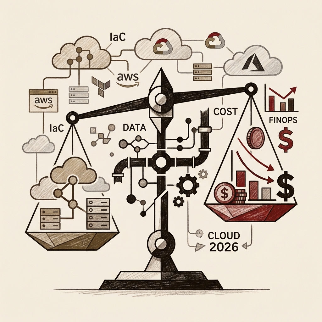 In 2026, global cloud spending has surpassed $1 trillion — yet without systematic cost management, organizations waste 32–40% of their budgets on idle resources and over-provisioned capacity. This guide delivers a comprehensive AWS vs GCP vs Azure service-by-service comparison, a Snowflake vs BigQuery vs Redshift selection framework, and production-ready Terraform/OpenTofu patterns for Medallion architecture buckets and CI/CD pipelines. The FinOps section covers seven cost-reduction strategies — resource tagging, Reserved Instances, storage tiering, BigQuery cost control, and Spot instance patterns — that consistently achieve 25–30% savings, followed by a multi-cloud data egress cost playbook and open-standard vendor lock-in mitigation strategies.